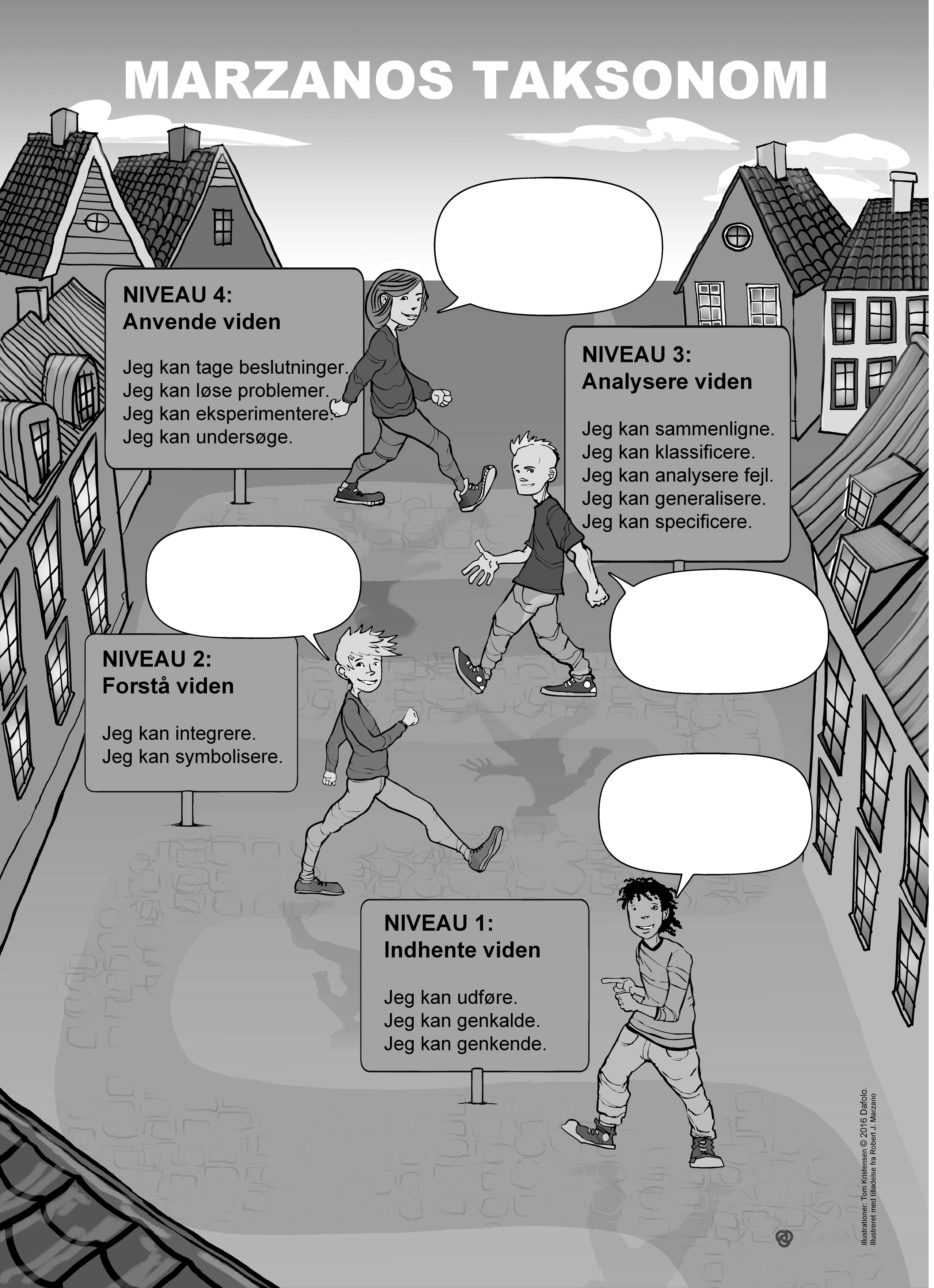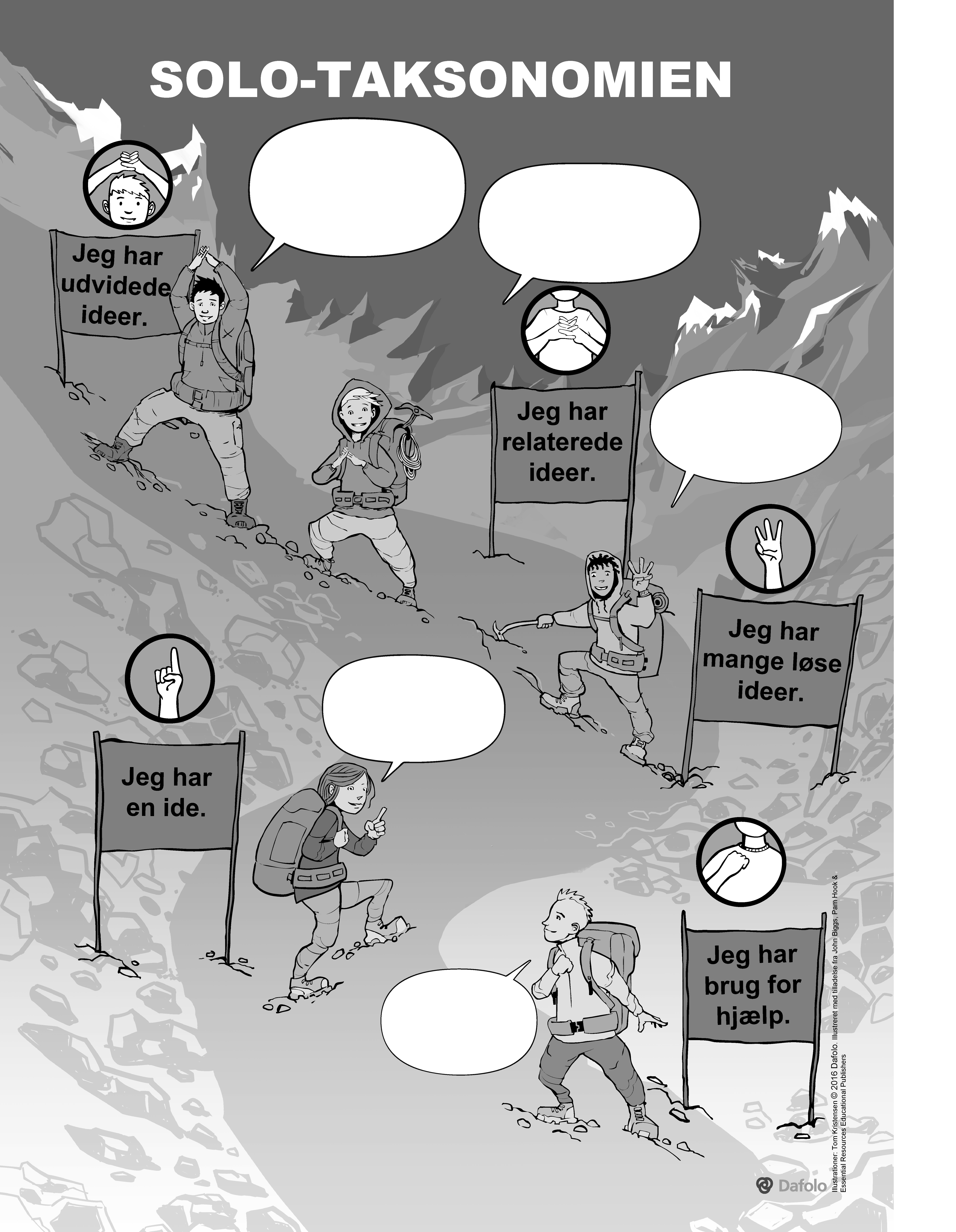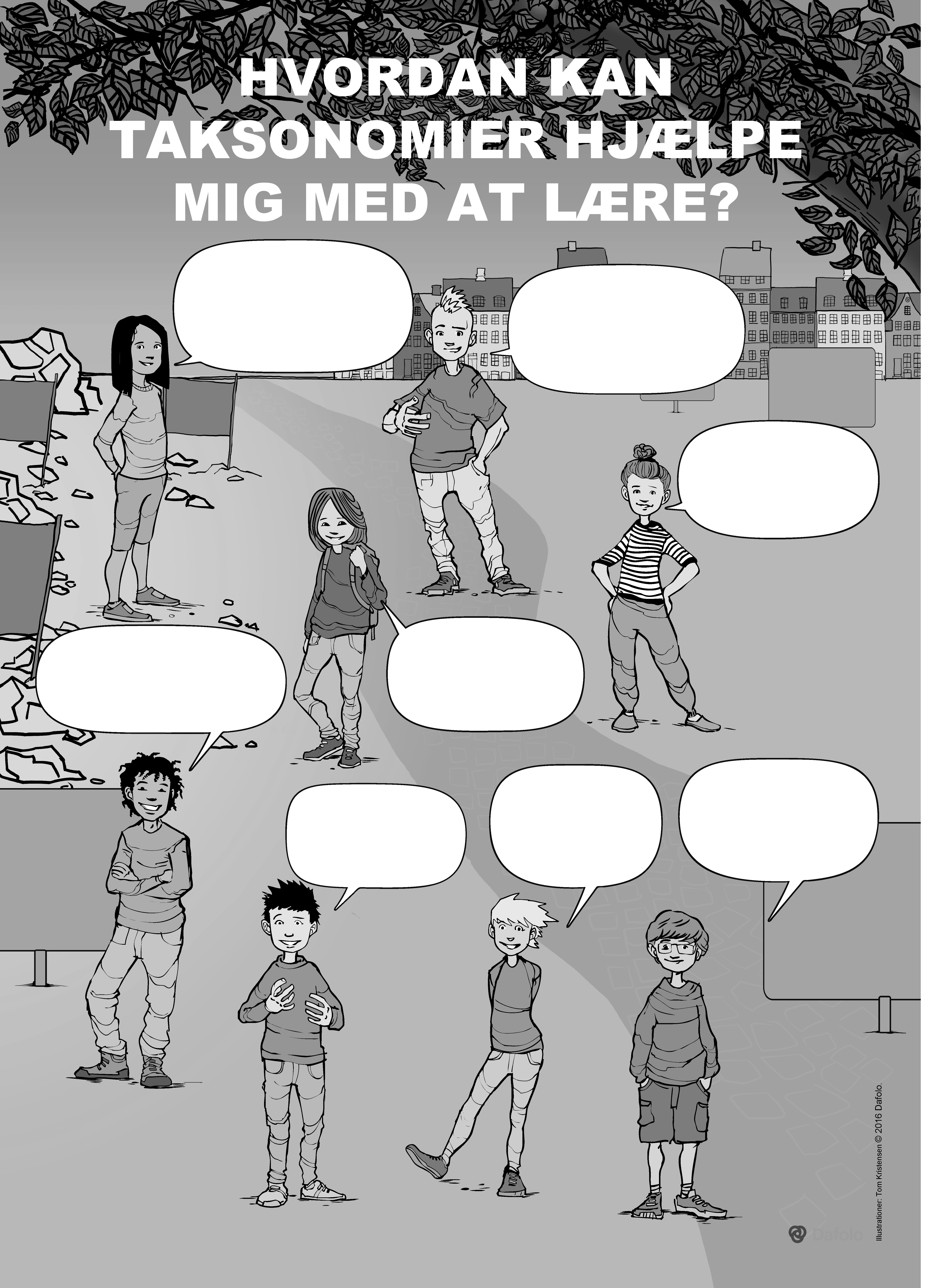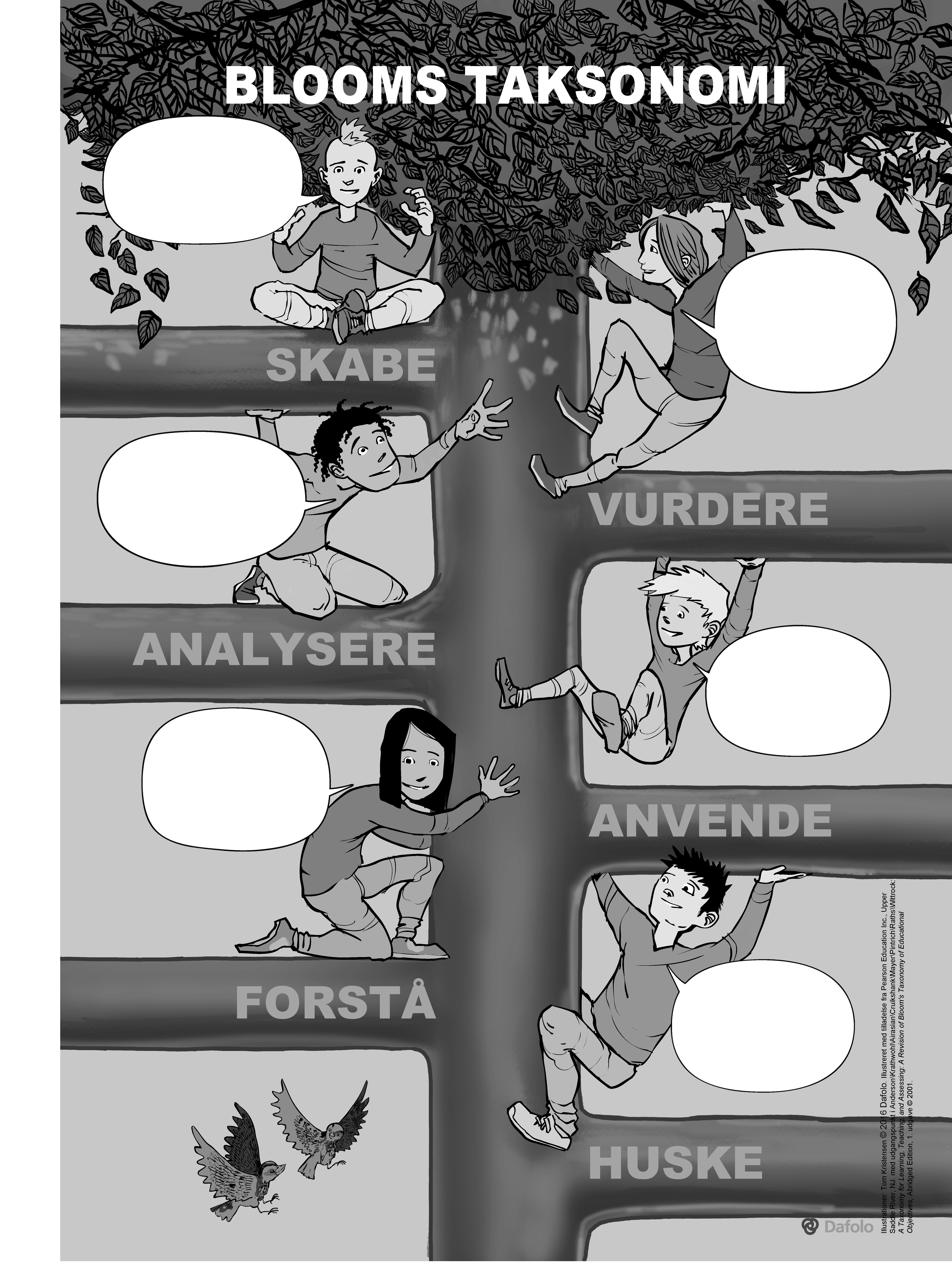 På www.dafolo.dk/taksonomiplakater findes de fire plakater i A4-udgaver i sort/hvid, så det er muligt at printe versioner til eleverne, hvorpå de kan skrive egne eller klassens læringsmål. På hjemmesiden findes desuden en række supplerende, taksonomiske redskaber.