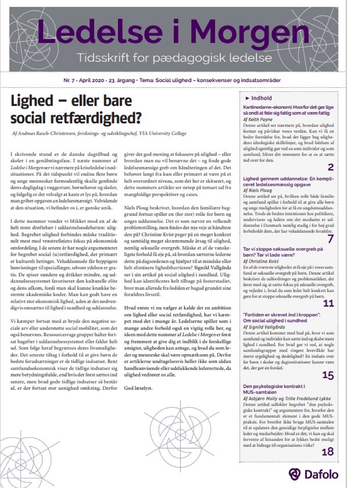 Ledelse i Morgen. Årgang 23, Nr. 7. April 2020 (E-tidsskrift