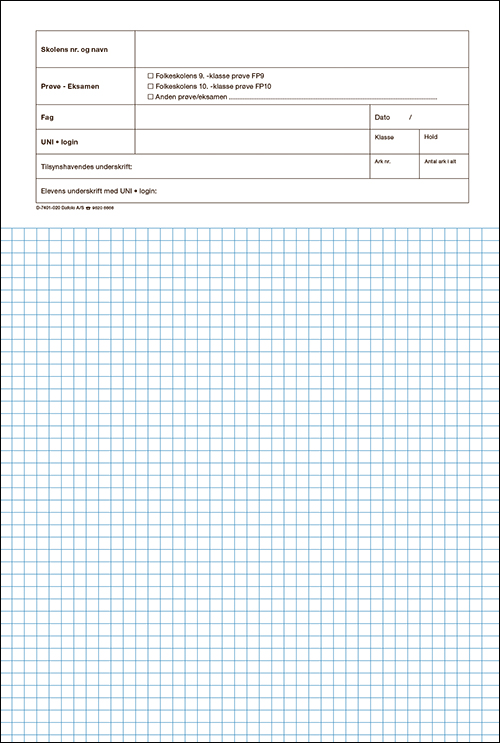 Der er mulighed for at få skolens eget navn trykt på prøvearket mod et tillæg.